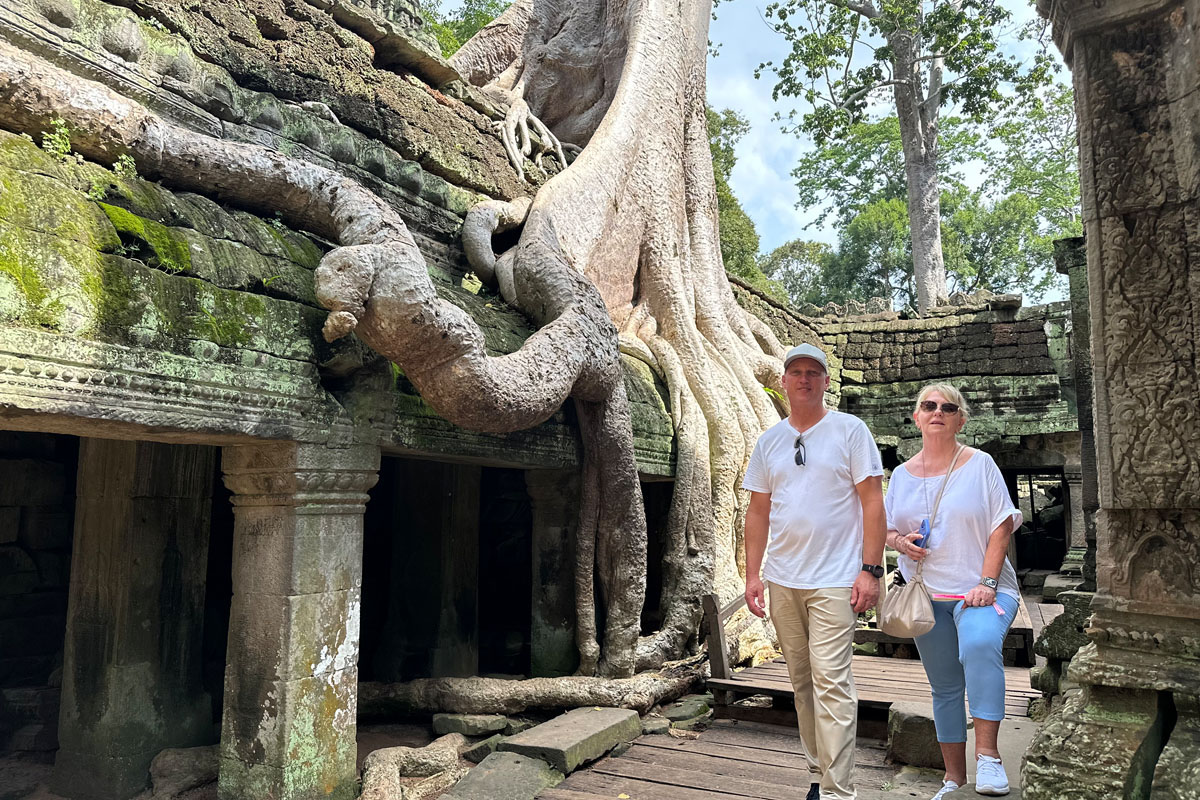 End your journey at Angkor Thom, the former royal city of the Khmer Empire. Enter through a monumental stone gate and explore Bayon Temple, famous for its many serene, smiling stone faces gazing in all directions.