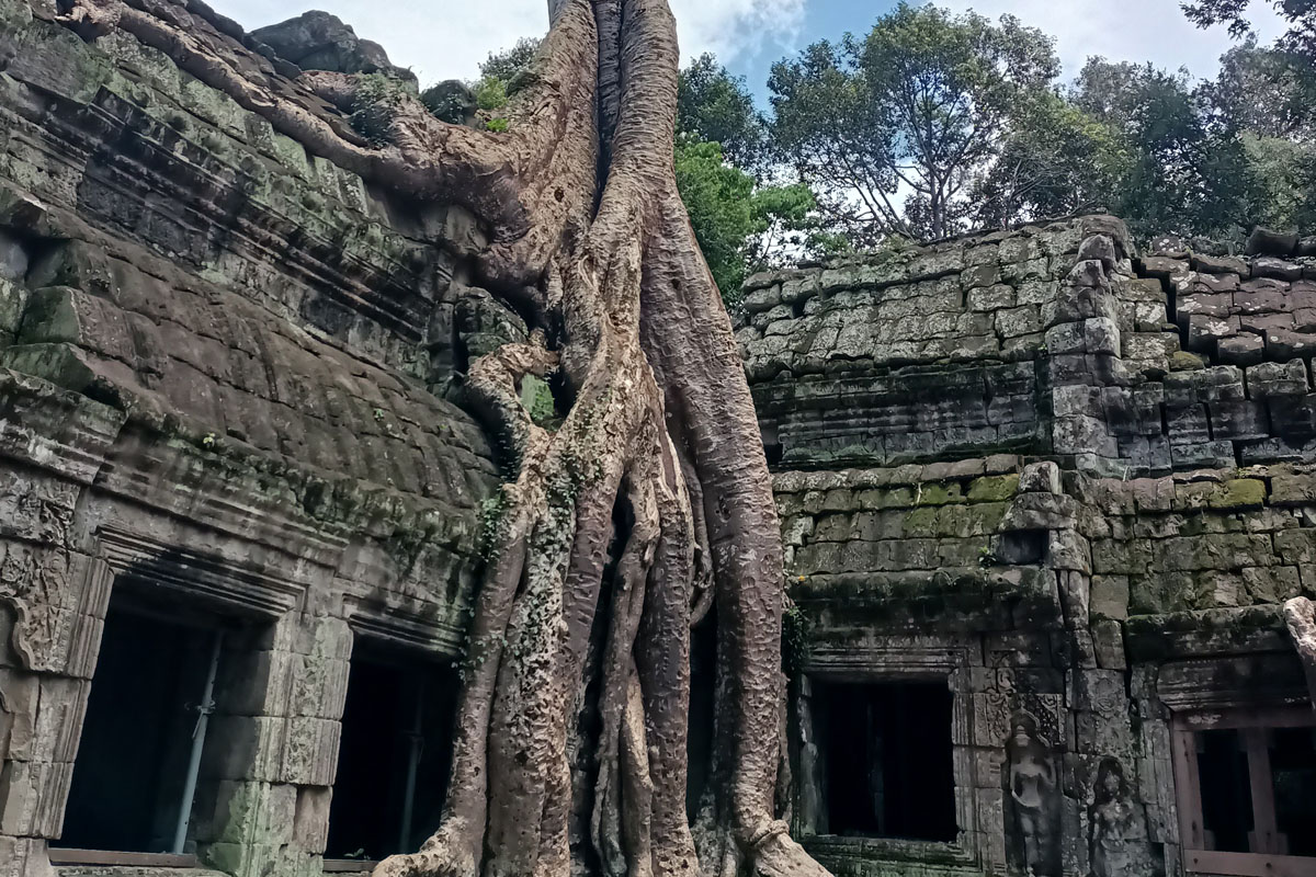 Explore the atmospheric ruins where massive tree roots wrap around ancient stone walls. Visiting early allows you to experience the temple in relative calm, capturing its mysterious beauty before larger crowds arrive.